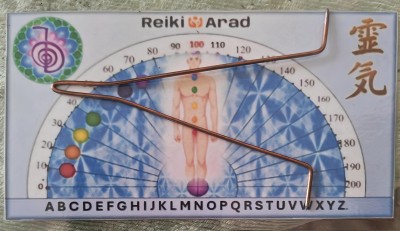Această ansă radiestezică, realizată cu o grosime de 1,5 mm pentru a oferi un echilibru optim între sensibilitate și stabilitate mecanică, un instrument de interfață între subconștientul operatorului și câmpurile energetice subtile. Materialul său, de regulă cuprul sau un alt conductor, favorizează captarea variațiilor de micro-tensiune neuromusculară care apar atunci când intenția mentală interacționează cu vibrația obiectului sau persoanei investigate. Îndoirea precisă a firului metalic permite o oscilație fluidă, transformând răspunsurile ideomotorii fine în mișcări ample, ușor de interpretat vizual pe scara raportorului. Raportorul include este un cadran complex de măsurare, conceput special pentru a cuantifica calitatea și intensitatea fluxului vital, oferind o perspectivă multidimensională asupra stării energetice a ființei.